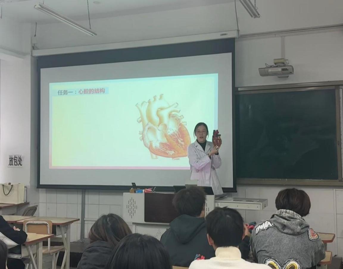 此次公开课三位教师呈现了兼具专业性与职教特色的教学实践:杜雪玲老师以Tabata训练为主线,通过动作分解与分组练习,实现健身科学与课堂趣味的统一;崔珂萌教师运用模型与动画,将复杂的心脏结构直观呈现,有效突破教学难点;王晓教师围绕“扣背拍痰”操作,通过规范演示与实时指导,强化学生实操能力。