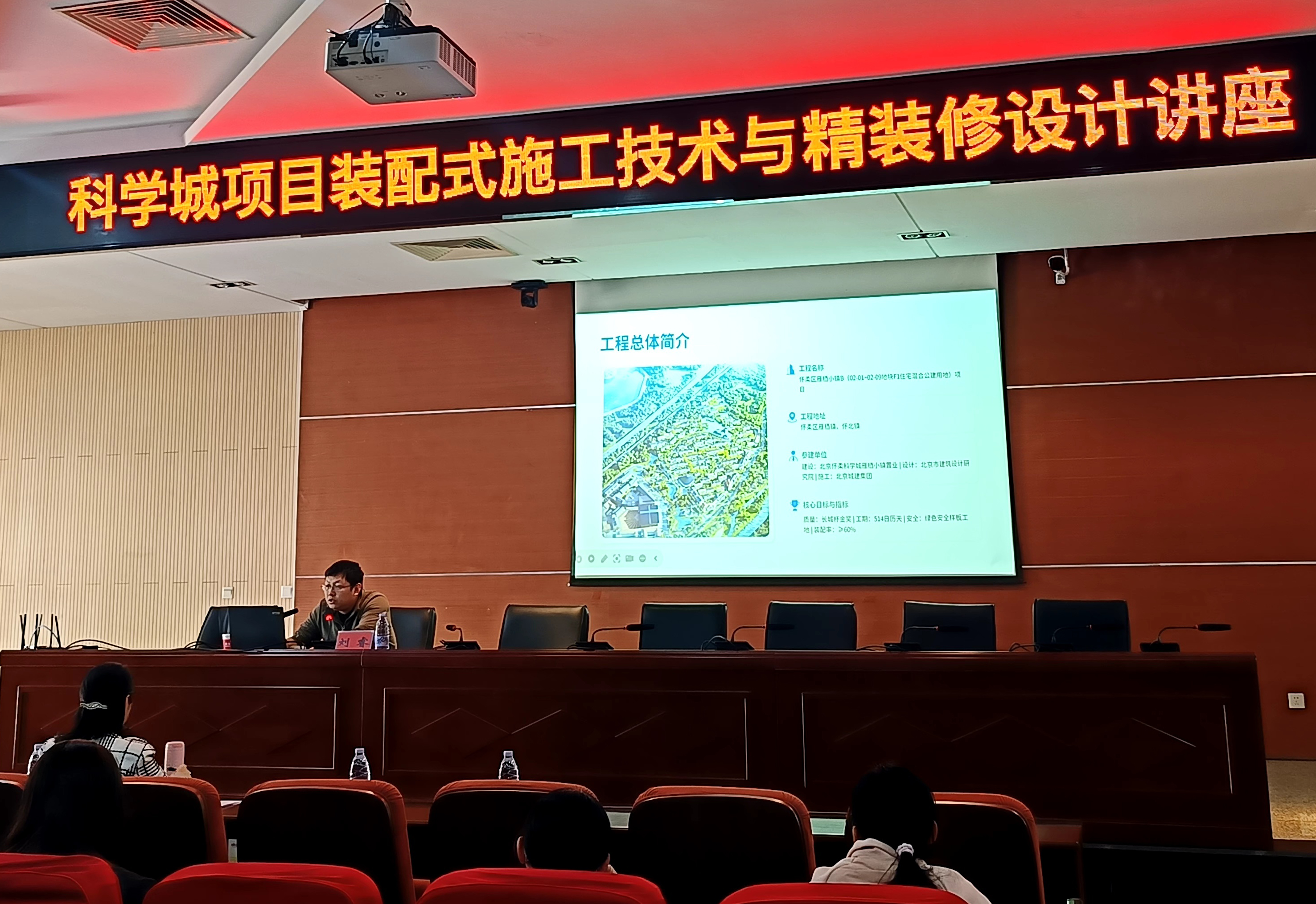 讲座以《科学城项目装配式施工技术与精装修方案解读》为题,结合怀柔区雁栖小镇B项目的工程实践,系统讲解了科学城项目装配式施工组织、核心施工工艺、质量与安全管理以及精装修方案等方面。针对施工中的重难点,他结合项目实际案例,展示了BIM技术在深化设计、碰撞检测、虚拟预拼装等方面的创新应用,强调数字化手段对提升工程质量与效率的重要作用。在精装修方案解读环节,通过效果图展示了洋房、酒店等不同业态的装饰设计理念,生动呈现了装配式建筑与高品质装修的有机融合。