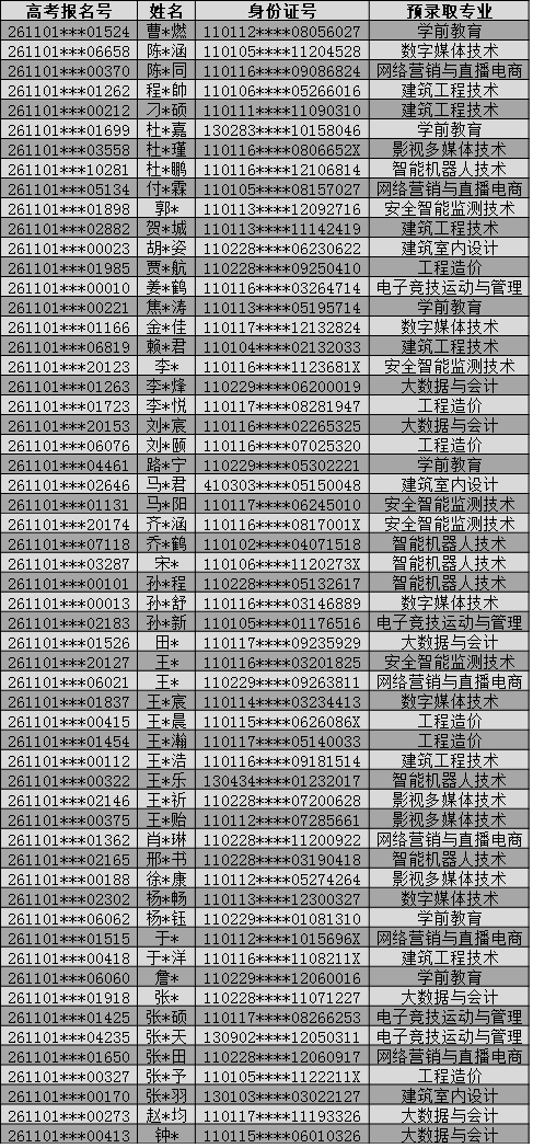 2026年高职自主招生志愿征集预录取名单