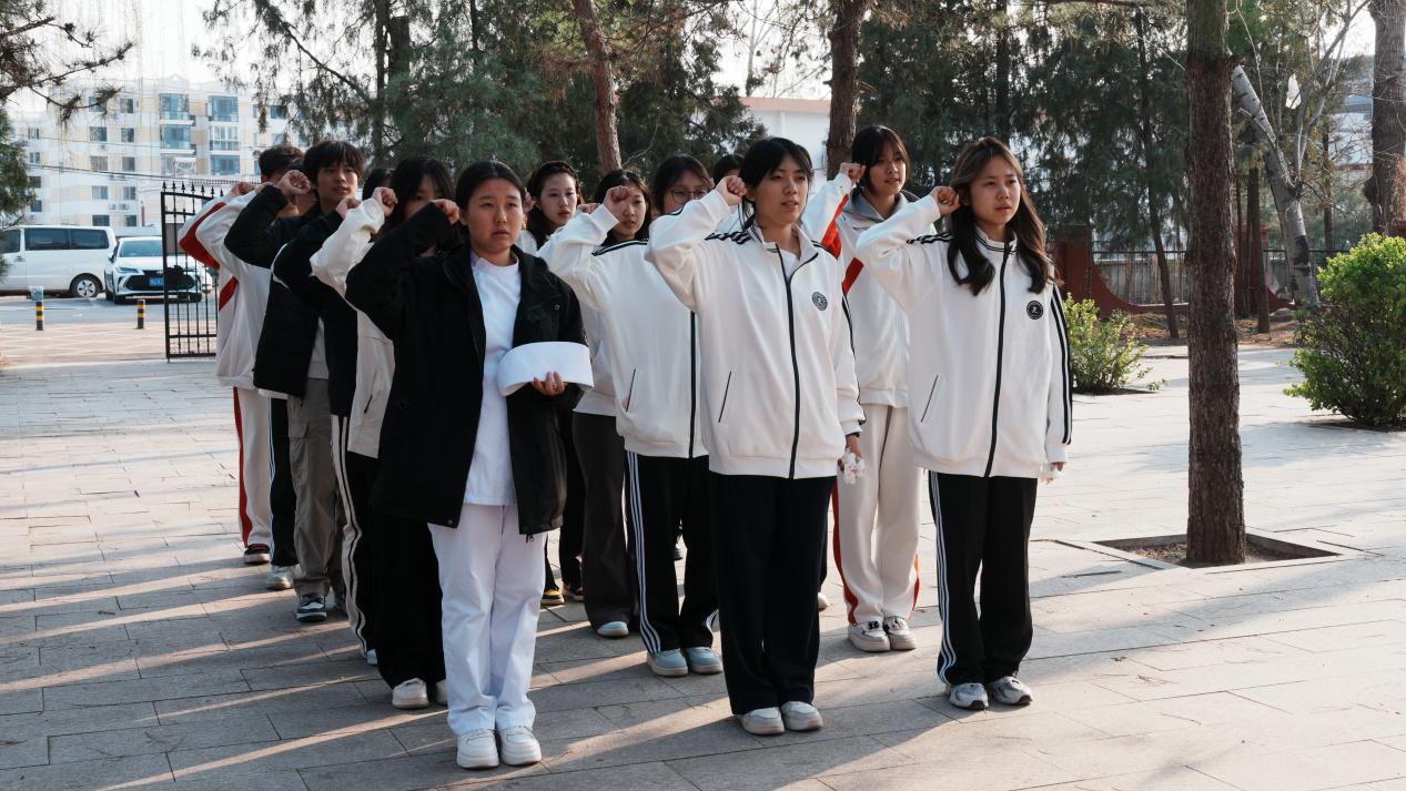 活动在庄严的国歌声中拉开序幕。全体师生肃立默哀,向烈士致以最深切的悼念。团委副书记(常宇轩)带领团员重温入团誓词,铿锵誓言表达了京北学子继承先烈遗志、矢志奋斗的决心。随后,师生代表依次向烈士纪念碑敬献鲜花,寄托哀思。
