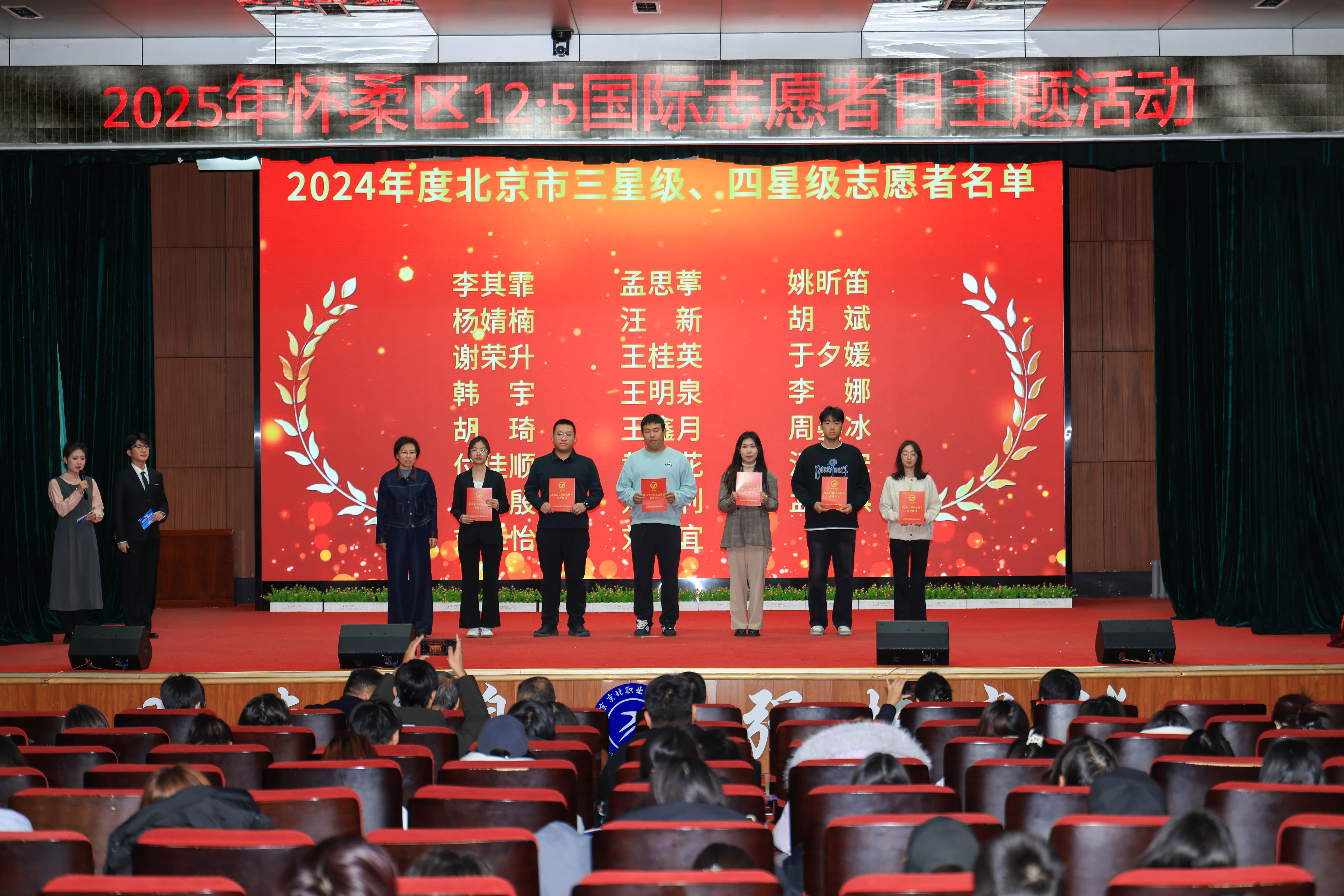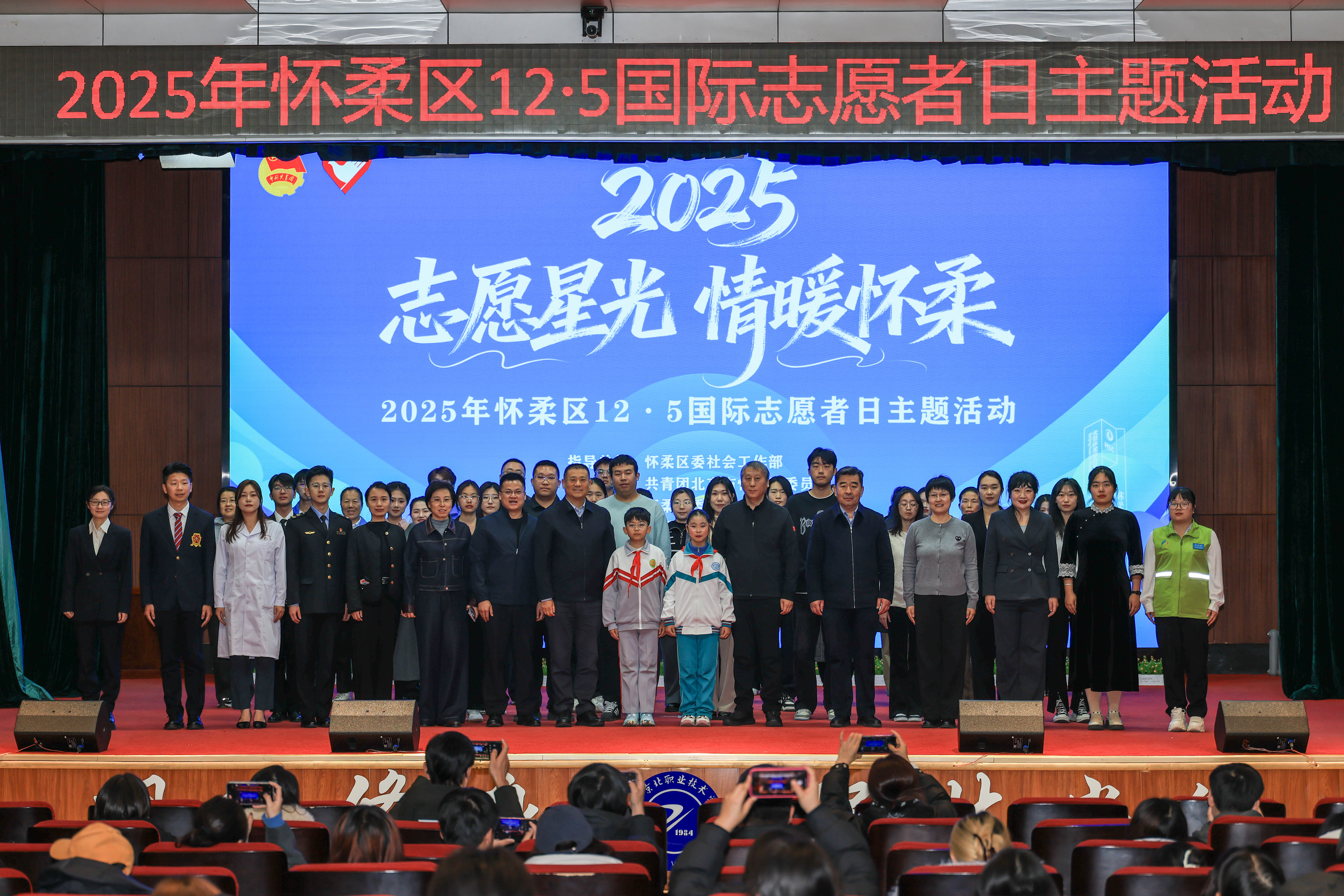 为进一步弘扬“奉献、友爱、互助、进步”的志愿精神,传递社会正能量,激发广大怀柔志愿者积极性,在第40个12·5国际志愿者日来临之际,在北京京北职业技术学院,开展了“志愿星光,情暖怀柔”2025年怀柔区12·5国际志愿者日主题活动。区委副书记、区委政法委书记莫剑彬出席活动并致辞,区委社会工作部、团区委、北京京北职业技术学院主要领导,相关单位主管领导、怀柔区志愿者代表及北京京北职业技术学院150余名师生代表参加了本次活动。
